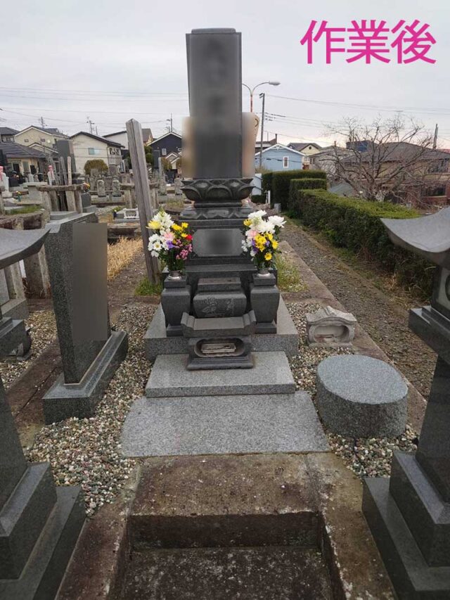 墓石の清掃は水洗いにて実施いたします。※特殊なクリーニングや墓石の加工などはご対応しておりません。